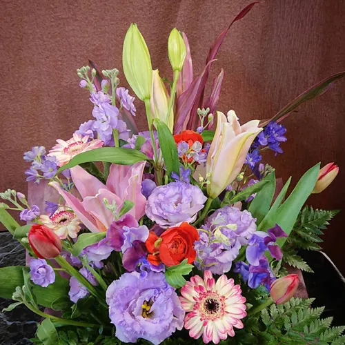 誕生日を彩る明るく華やかなフラワーギフト。贈る相手のイメージに合わせて、季節の花を使ったアレンジをお作りします。